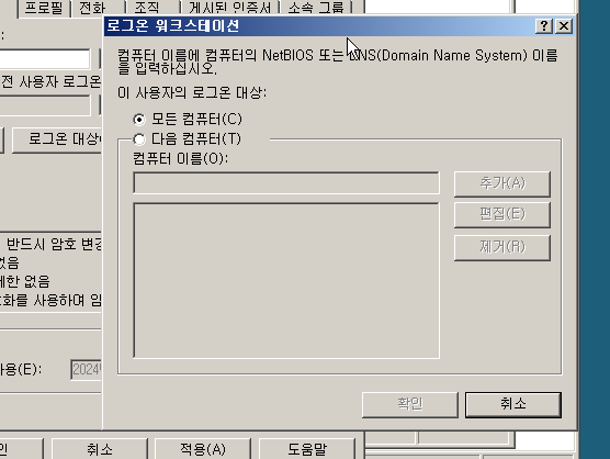 로그온 대상을 통해서 로그온 할 컴퓨터를 지정 할 수도있다.