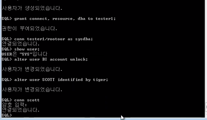 Oracle에서의 관리자 계정에는