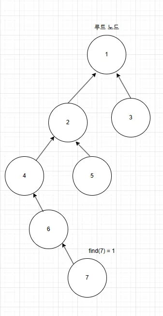 위 사진처럼 7이라는 노드에 find 연산을 하면 1이라는 값을 반환해야됨
