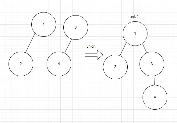 두 트리를 합칠 때 트리의 높이(깊이, rank)를 기준으로 더 작은 트리를 더 큰 트리 아래에 연결한다.