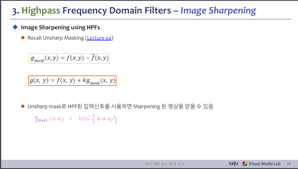 ⚫ Unsharp mask로 HPF된 입력신호를 사용하면 Sharpening 된 영상을 얻을 수 있음