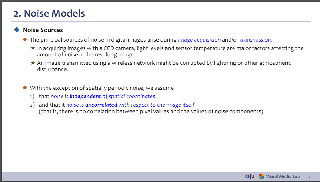 (즉, 픽셀 값과 노이즈 성분 값 사이에는 상관관계가 없습니다.)