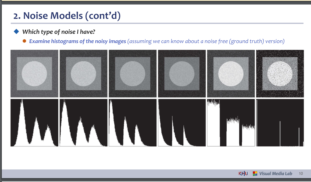 ⚫ 노이즈가 있는 이미지의 히스토그램을 검사합니다(노이즈가 없는(실측) 버전에 대해 알 수 있다고 가정)