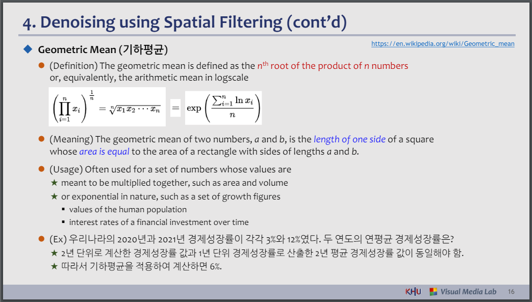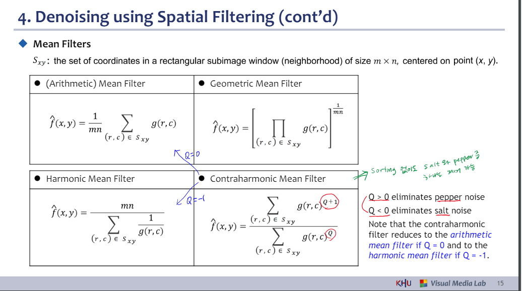 ⚫ (Arithmetic) Mean Filter ⚫ Geometric Mean Filter