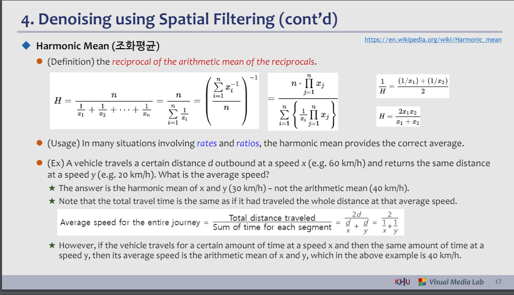 반고조파 필터는 Q = 0이면 산술 평균 필터로 감소하고 Q = -1이면 고조파 평균 필터로 감소합니다.