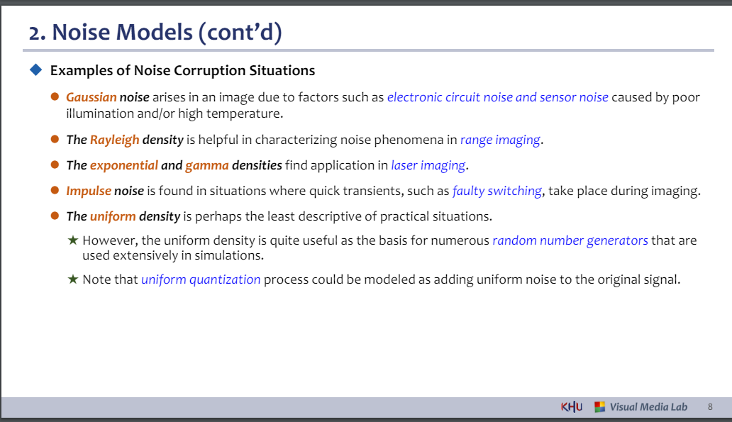⚫ 가우시안 노이즈는 조명 불량이나 고온으로 인한 전자 회로 노이즈, 센서 노이즈 등의 요인으로 인해 이미지에 발생합니다.