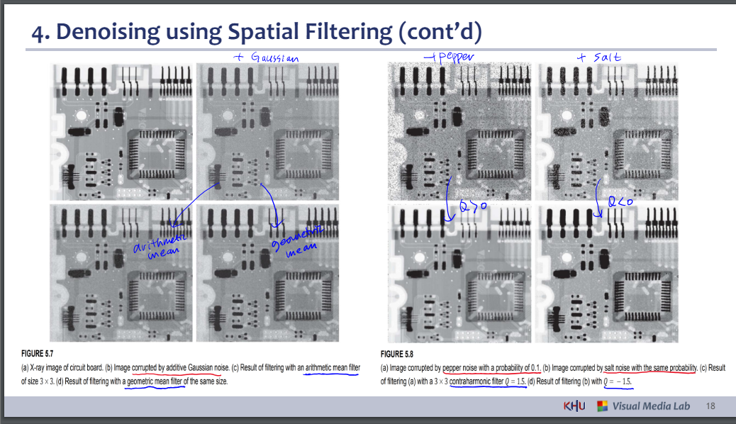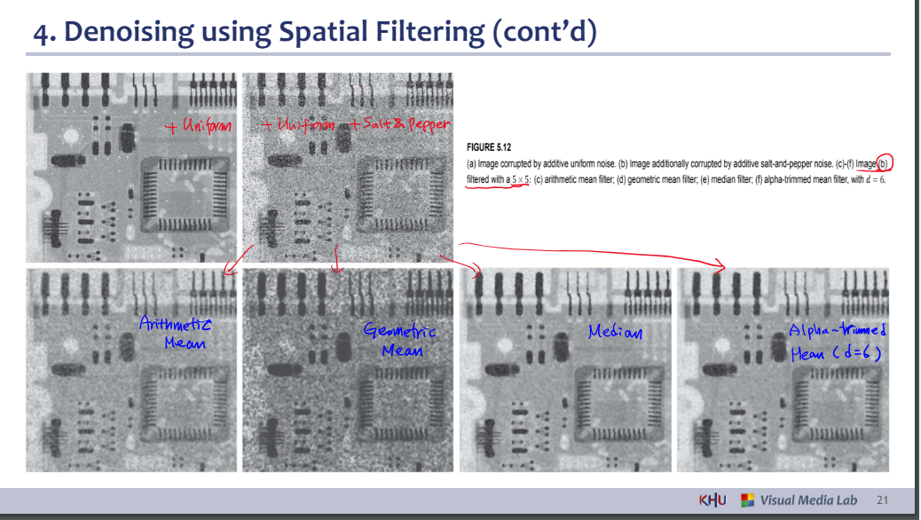 4. Denoising using Spatial Filtering (cont’d)