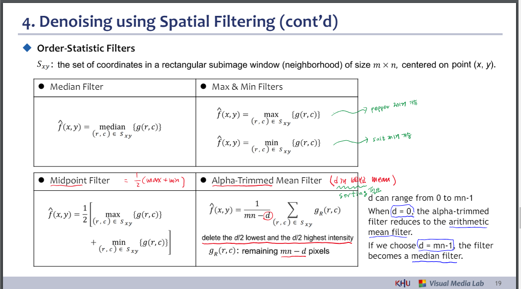 d = mn-1을 선택하면 필터는 중앙값 필터가 됩니다.