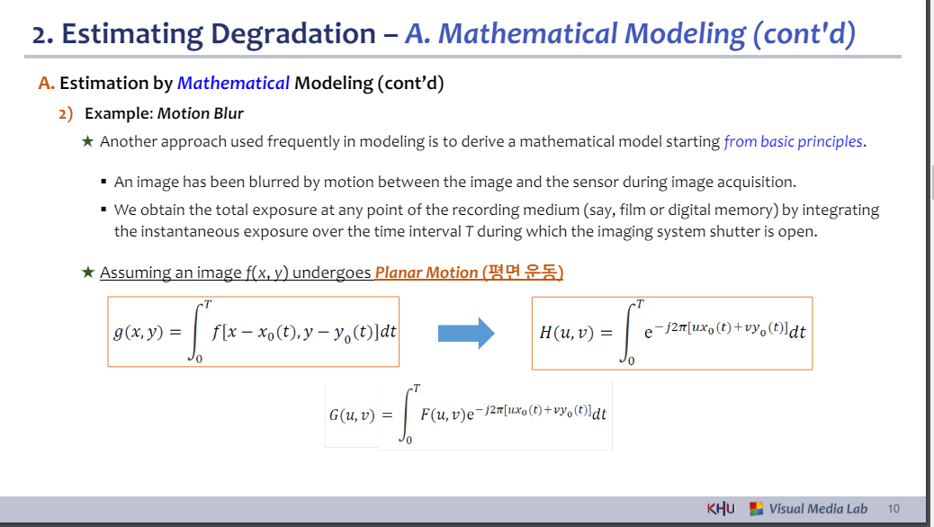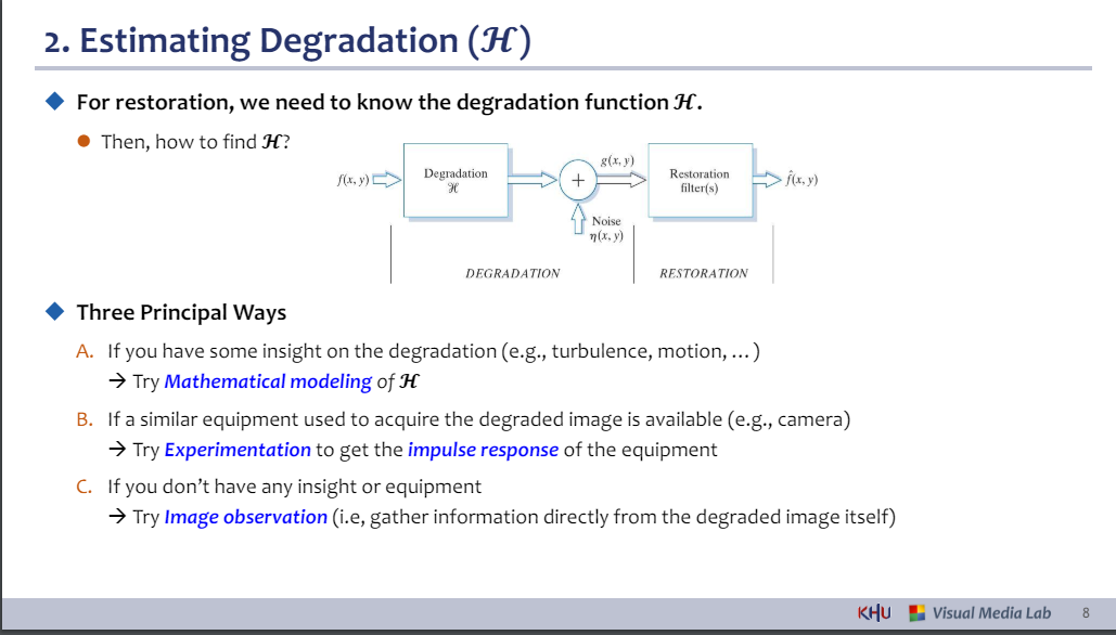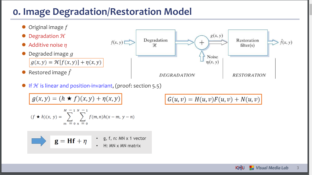 ◆ 복원을 위해서는 열화기능𝓗을 알아야 합니다.