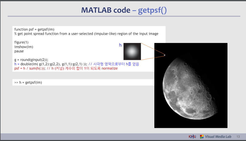 ⚫ 아이디어: 동일한 시스템 설정을 사용하여 임펄스를 이미징하여 열화의 임펄스 응답을 얻습니다.
