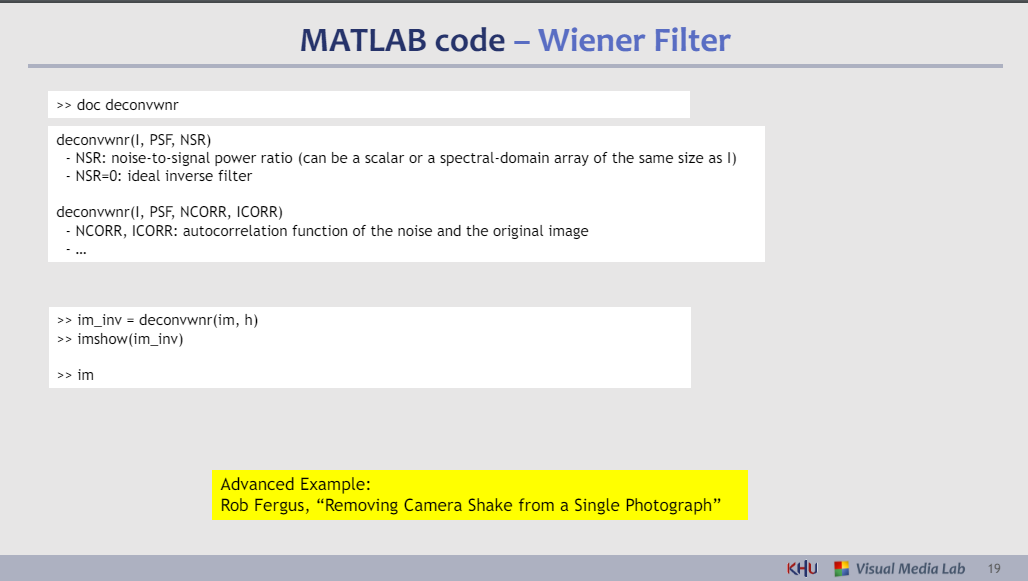 ◆ 예 5.11: Wiener 필터링을 사용한 추가 디블러링 예