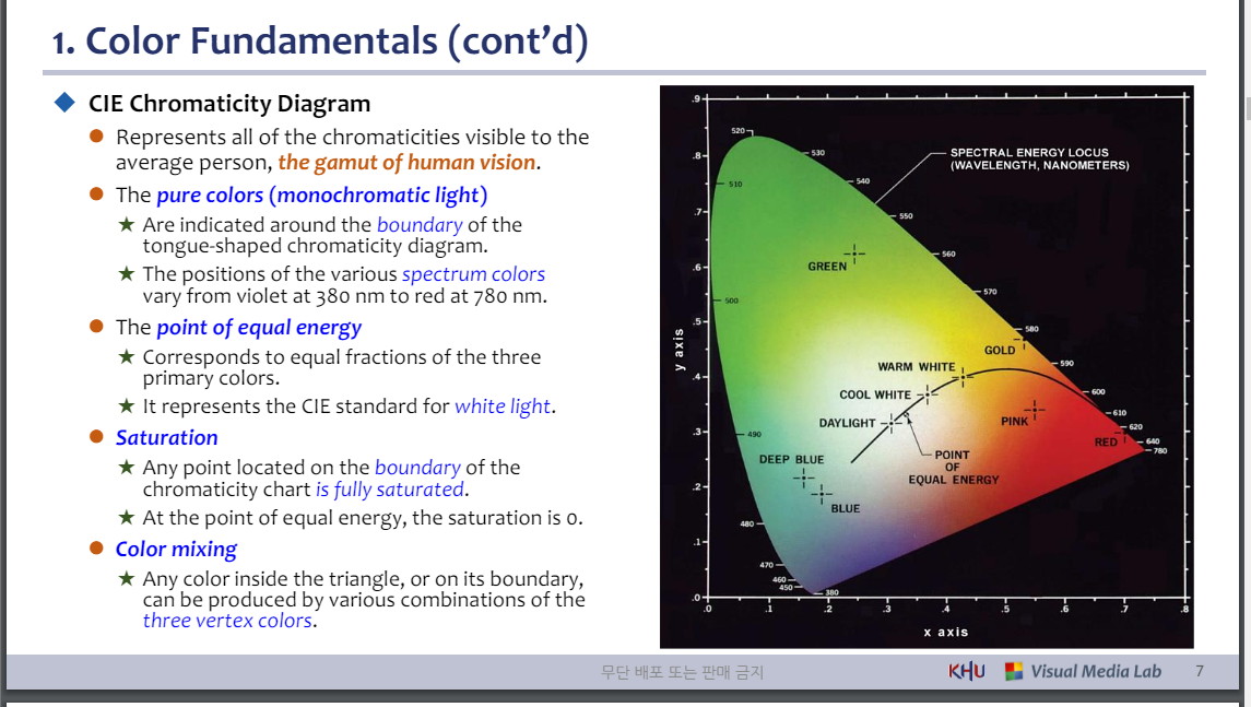 ★ 색도 차트의 경계에 위치한 모든 점은 완전히 포화됩니다.