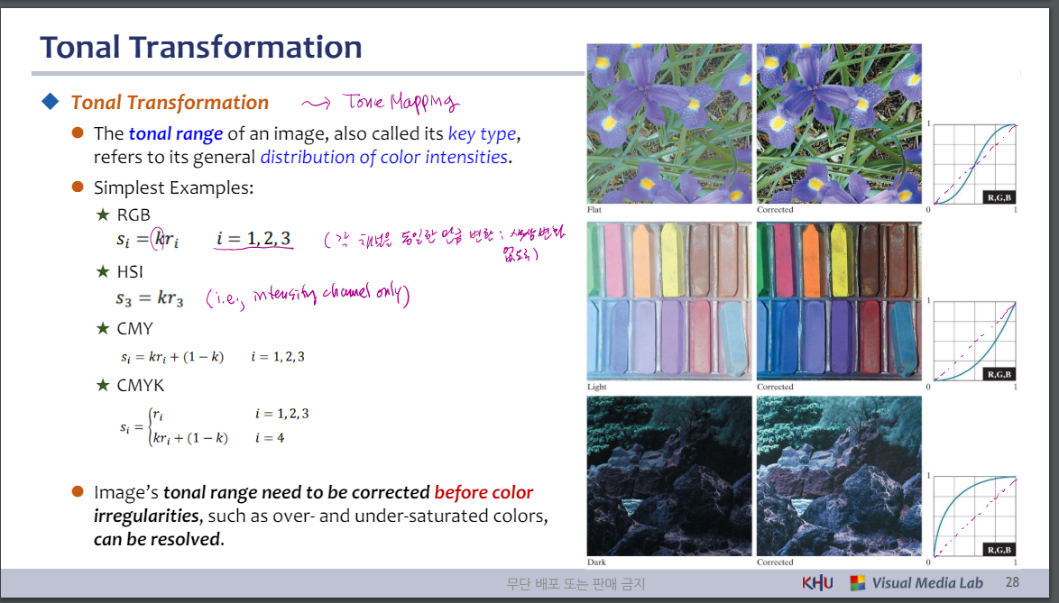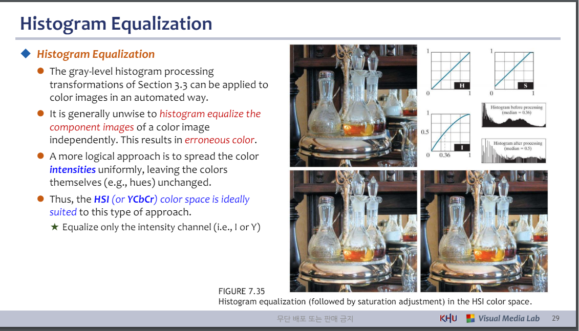 ⚫ 섹션 3.3의 회색조 히스토그램 처리 변환을 컬러 이미지에 자동으로 적용할 수 있습니다.