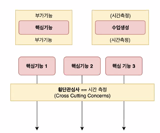 횡단 관심사 : 부가 기능이 여러곳에서 반복적으로 적용되는 상황