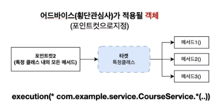 execution(* createCourse(..)) // 반환타입 상관없음, createCourse 이라는 매서드, 매개변수 상관없음
