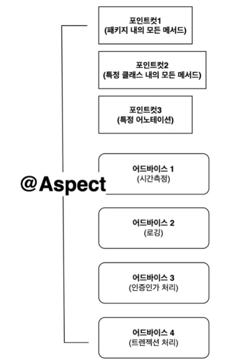 * 애스팩트: 어드바이스와 포인트컷을 하나로 묶은 모듈