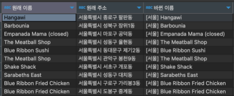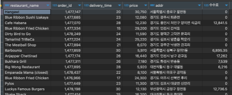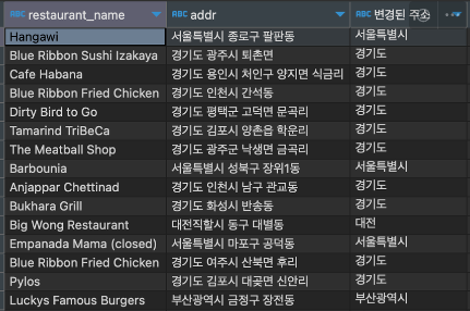(서울 음식점들의 주소를 전체가 아닌 ‘시도’ 만 나오도록 수정)