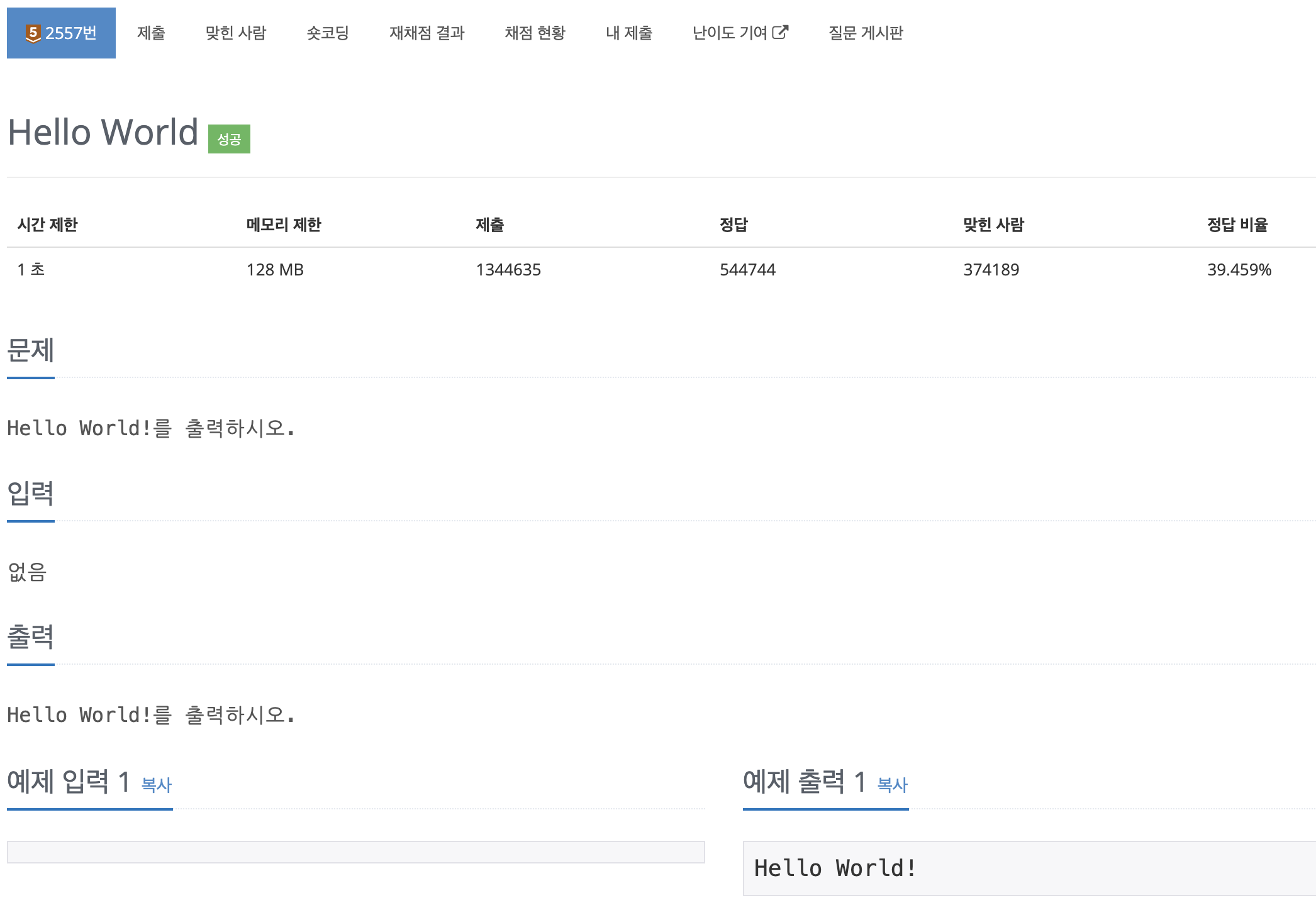 기초라고 할 수 있는 "Hello World!"를 출력하는 문제이다.