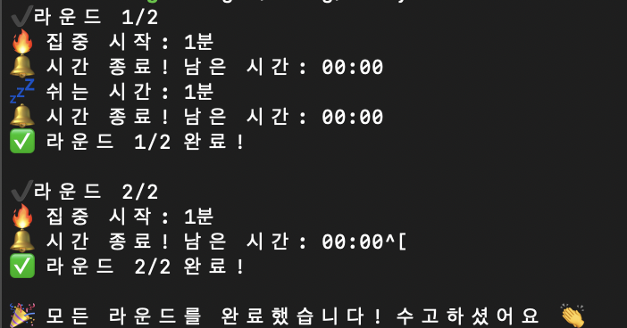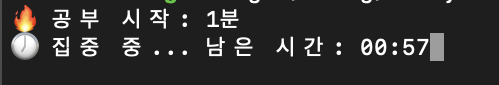 run_timer(args.focus * 60, "⏰ 집중 중...");