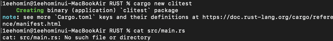 cargo.toml에 가면 clap이 추가가 되어있는지 확인이 가능하다.