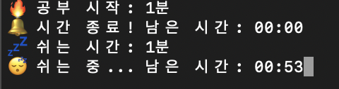 run_timer(args.breaktime * 60, "😴 쉬는 중..."); // rest -> breaktime