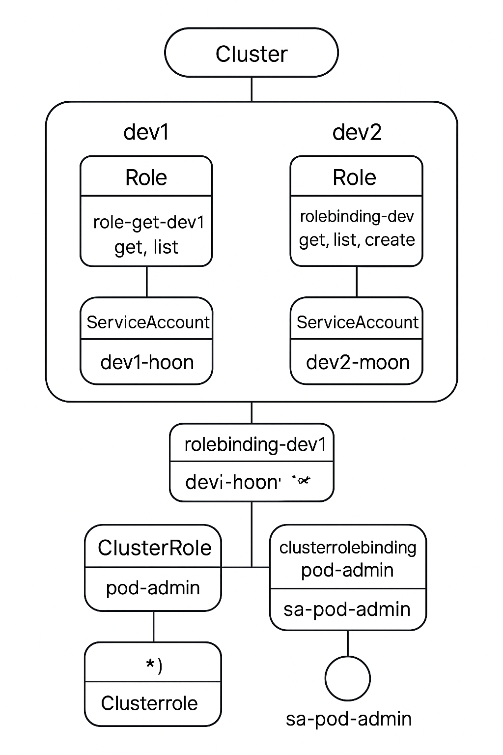 │ ├── RoleBinding → dev1-hoon 계정 연결