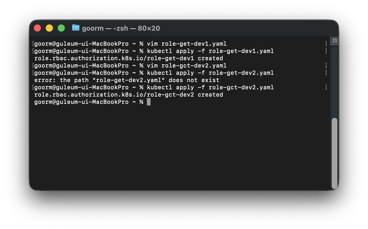 | 2 | 각 네임스페이스별 Role(권한) 정의 | role-get-dev1.yaml / role-gct-dev2.yaml |