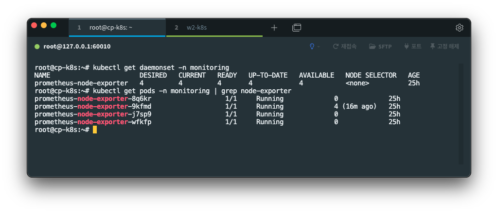 이미 Prometheus 설치 과정에서 Node Exporter가 DaemonSet 형태로 구성되어 있기 때문에,