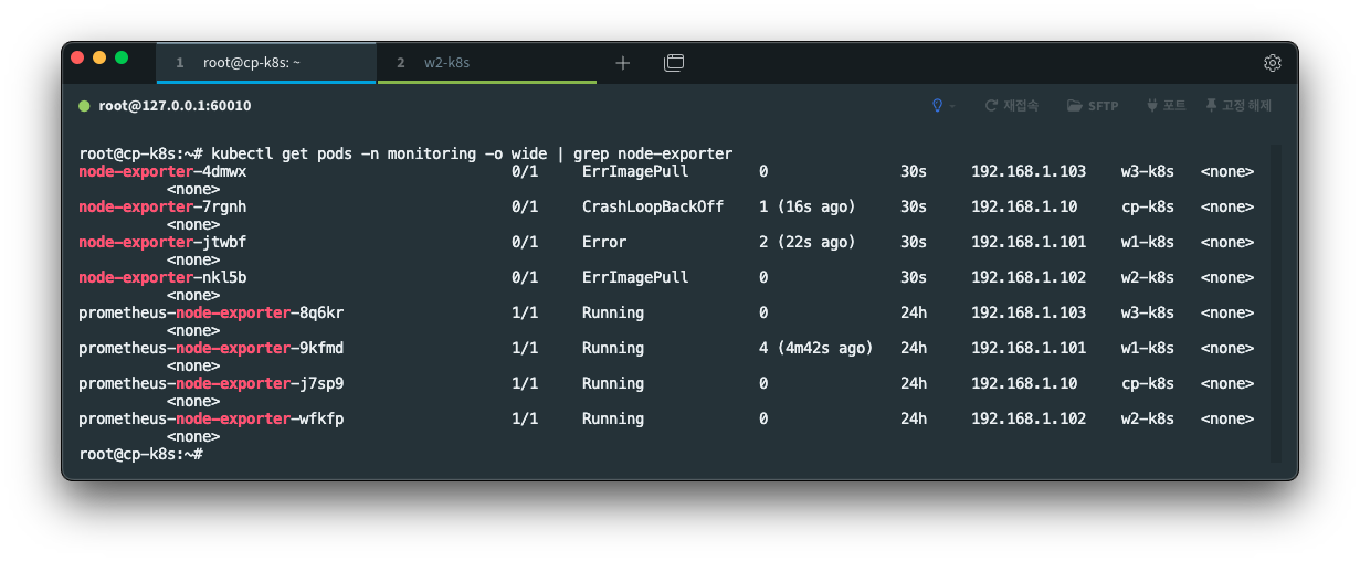 새로 생성된 pod 이름이 node-exporter-xxxxx 형태로 계속 생겨났기 때문에,