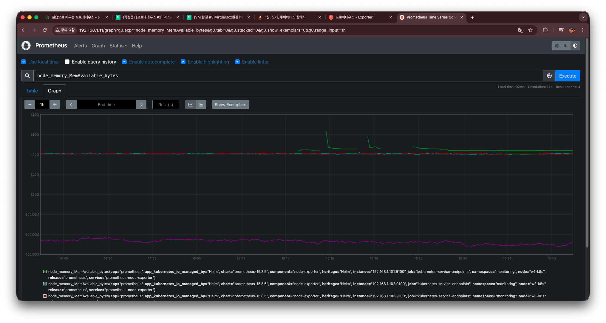 프로메테우스에서 graph 탭으로 이동한 뒤 다음 쿼리를 실행한다.