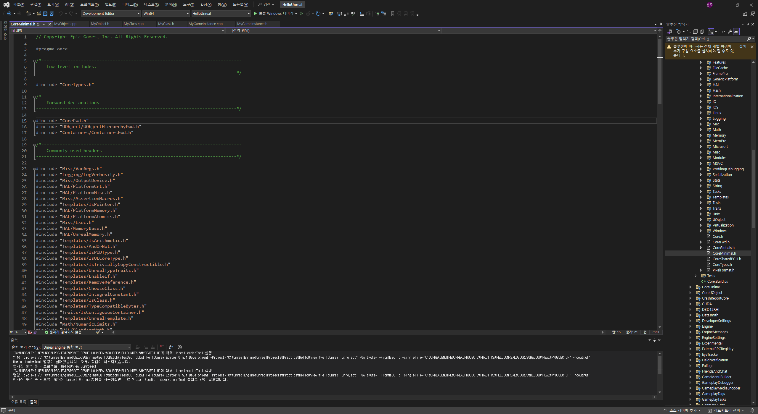 CoreMinimal.h는 엔진 설치 파일에 존재하는데, 들어가서 파일을 열어보면 수많은 헤더를 만날 수 있다.