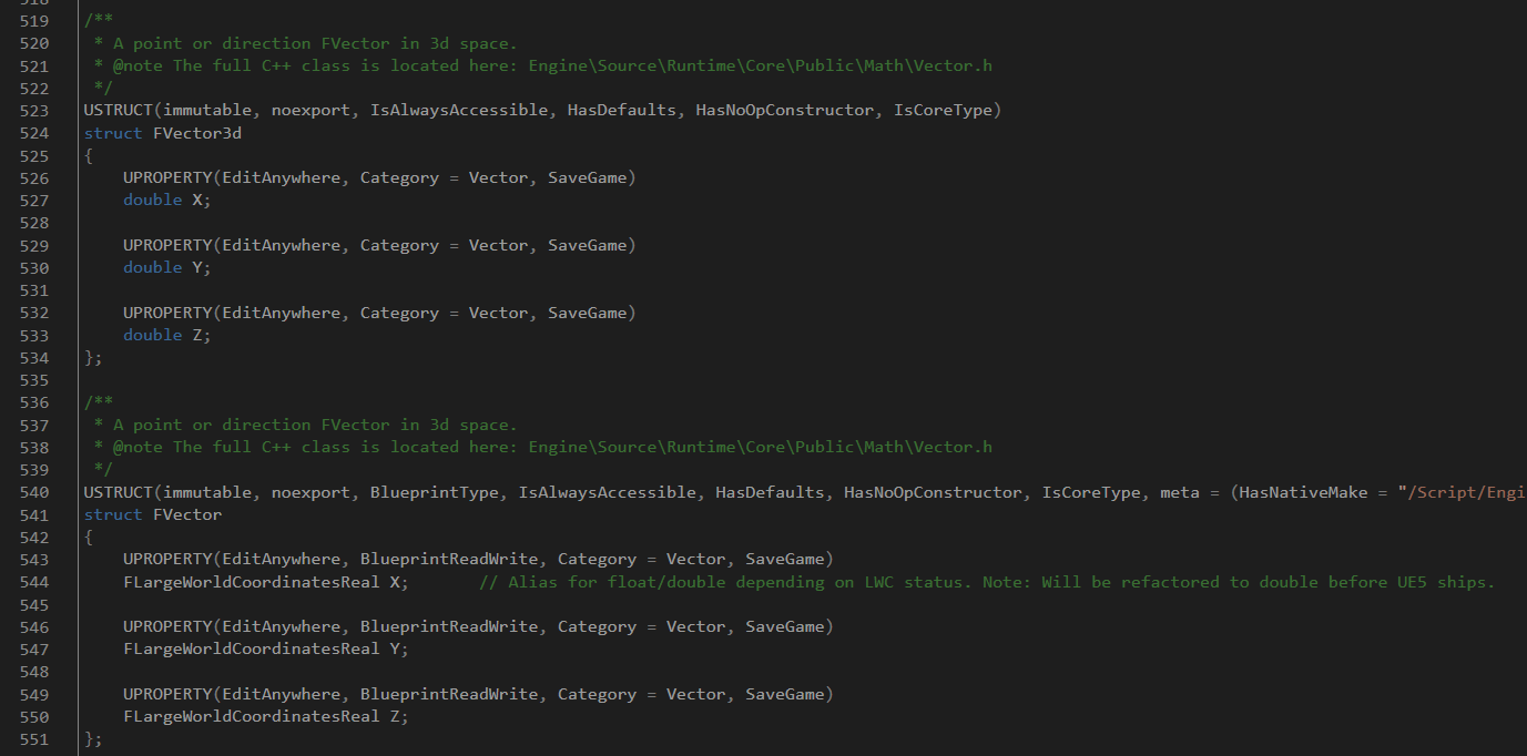 둘러보니 FVector가 있었다. FVectorX, Y, Z는 그냥 그저 Float값인줄 알았는데.. FLargeWorldCoordinatesReal라는 정체를 알 수 없는 타입의 값이었다.