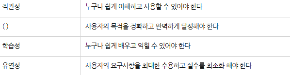 사용자 인터페이스(UI)의 기본 원칙에 대한 다음 설명에서 괄호에 들어갈 알맞은 원칙을 쓰시오.
