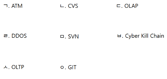 정답: ㄴ, ㅁ, ㅇ (CVS, SVN, GIT)