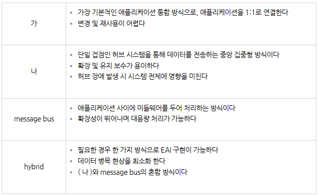 다음은 EAI의 구축 유형에 대한 설명이다. 괄호에 들어갈 알맞은 유형을 쓰시오.