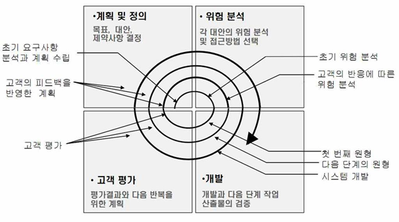 (계획→ 위험 분석→ 개발→ 고객 평가)