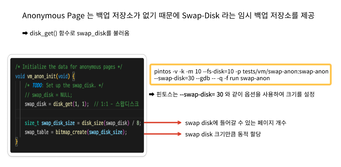 ex) swap disk 에 페이지 단위로 스왑 slot의 예시 - page 5개인 경우