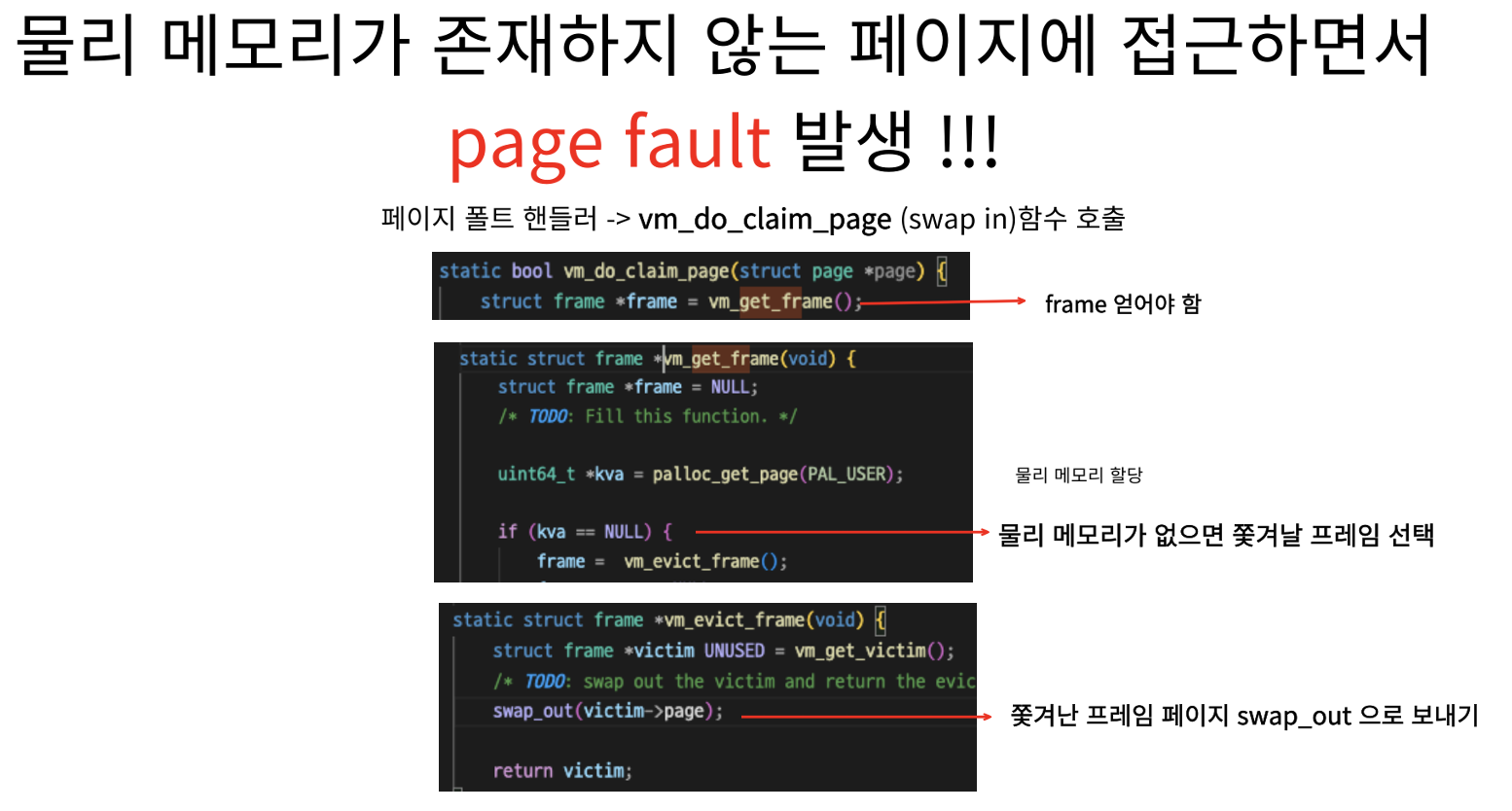 → 물리 메모리가 존재하지 않는 페이지에 접근하면서 page fault 발생
