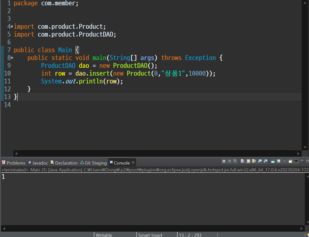 Member 와 Product 의 DTO와 DAO 클래스를 만들어 줌.