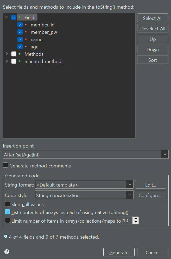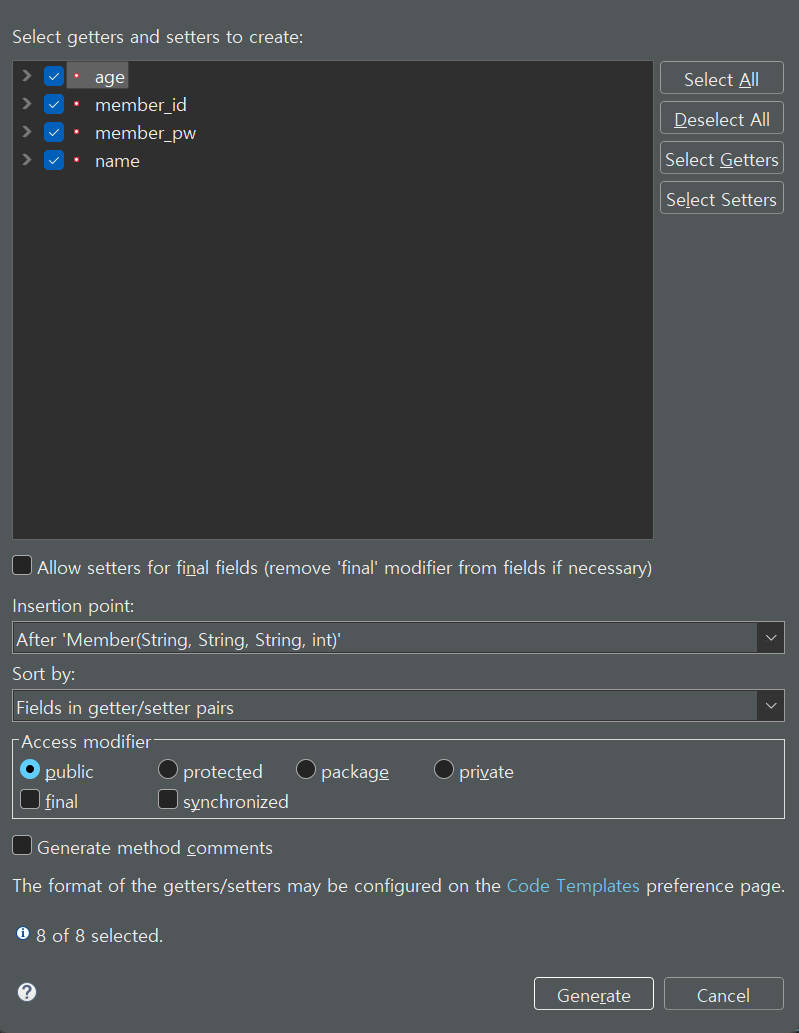 get set 메소드들과 toString메소드를 간편하게 만드는 방법