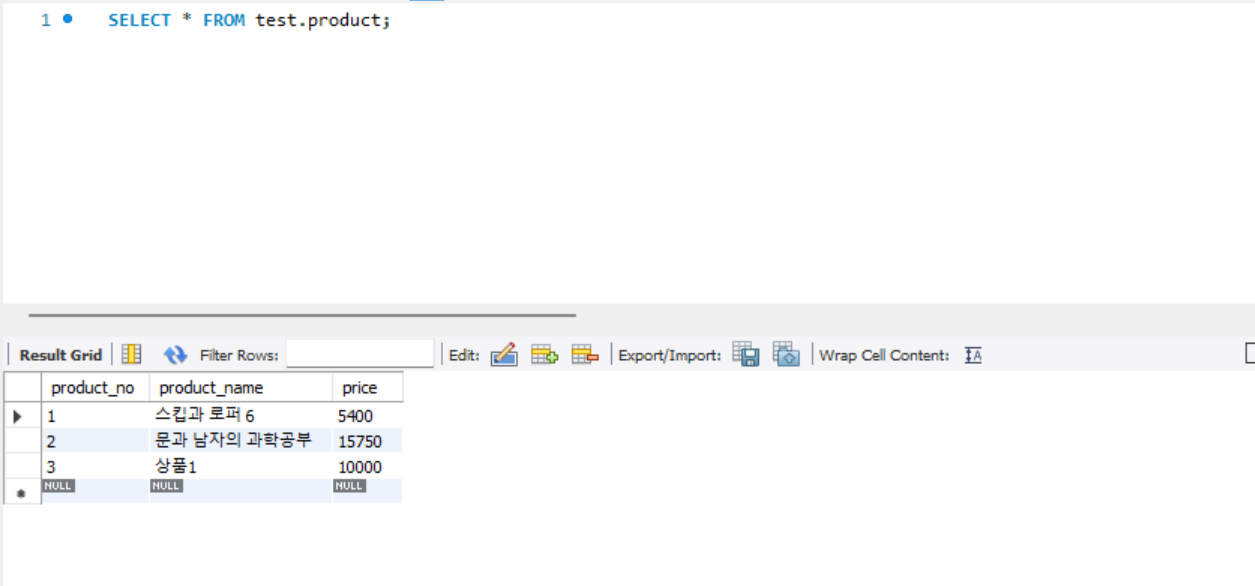 Product 테이블을 만들때는 product_no 컬럼에 AutoIncrement설정을 해줘야함(숫자타입에만 설정가능)