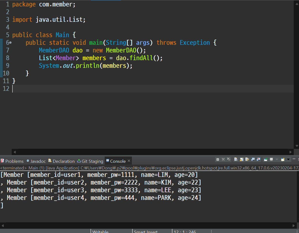 //rs.getString()과 rs.getInt()를 통해 ResultSet에서 데이터를 추출하고, 이를 Member 객체의 생성자에 전달함.