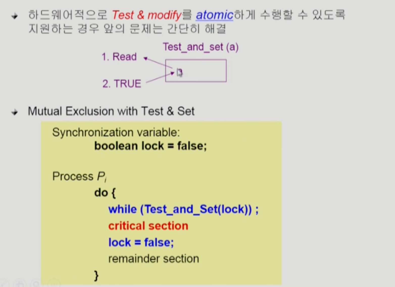 하드웨어적으로 Process Synchronization 해결
