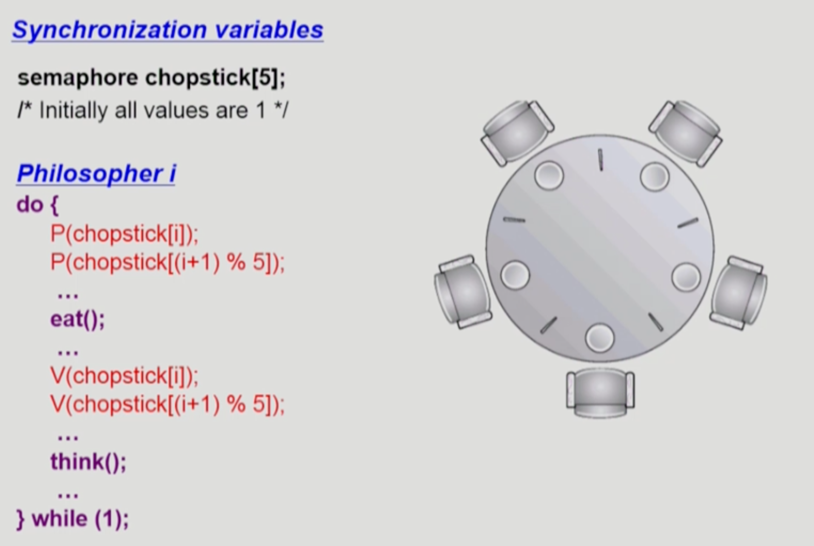 - 5번 철학자는 두 개의 젓가락을 잡을 수 없다.
