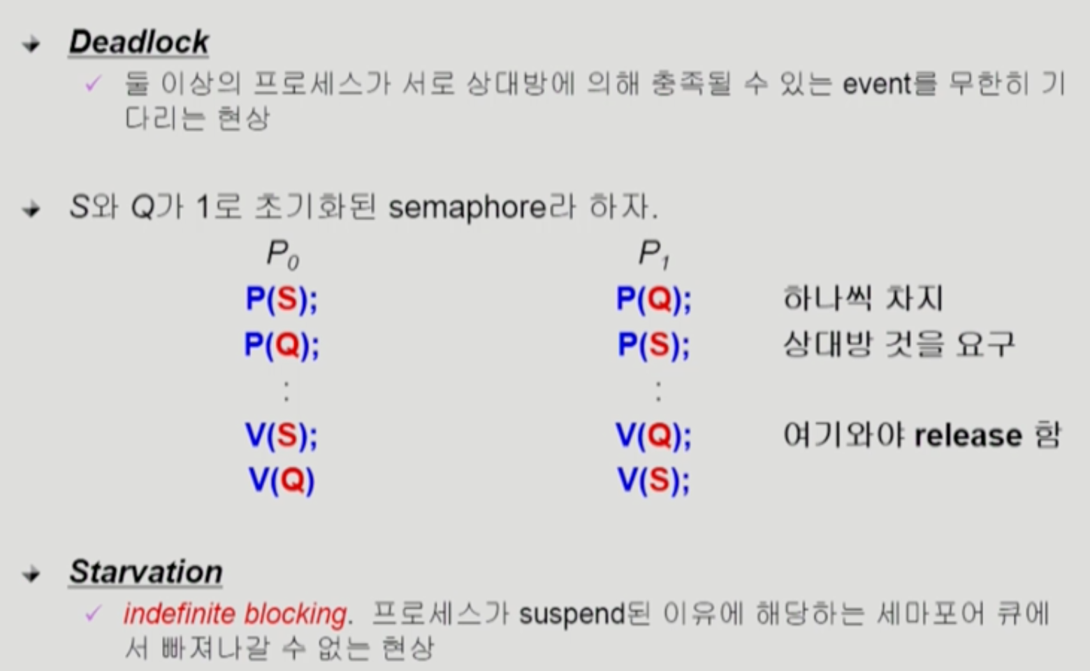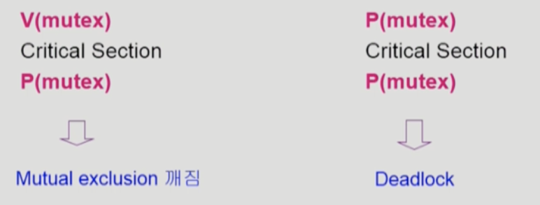 상대방이 V연산을 하기 전에 자신은 P만 진행하기 때문에 busy-wait을 해야한다.