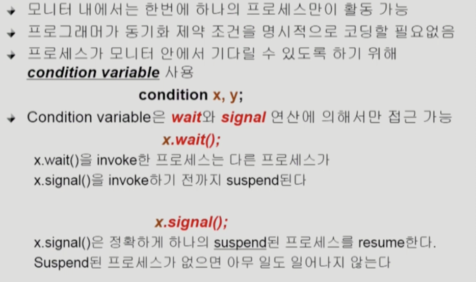 x.signal() 은 정확하게 하나의 잠이 든 프로세스를 깨운다.