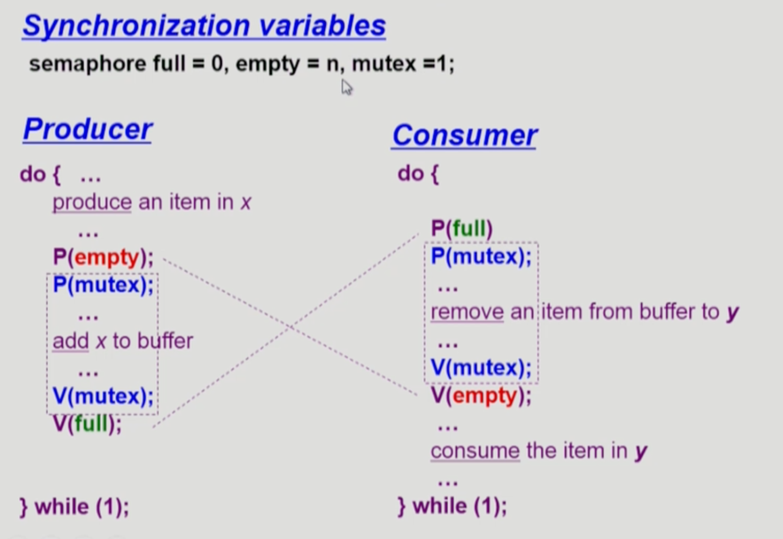 condition variable -> empty, full