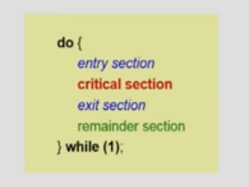 해당 세션은 lock을 걸고(entry section), 풀고(exit section)하는 작업이 필요.