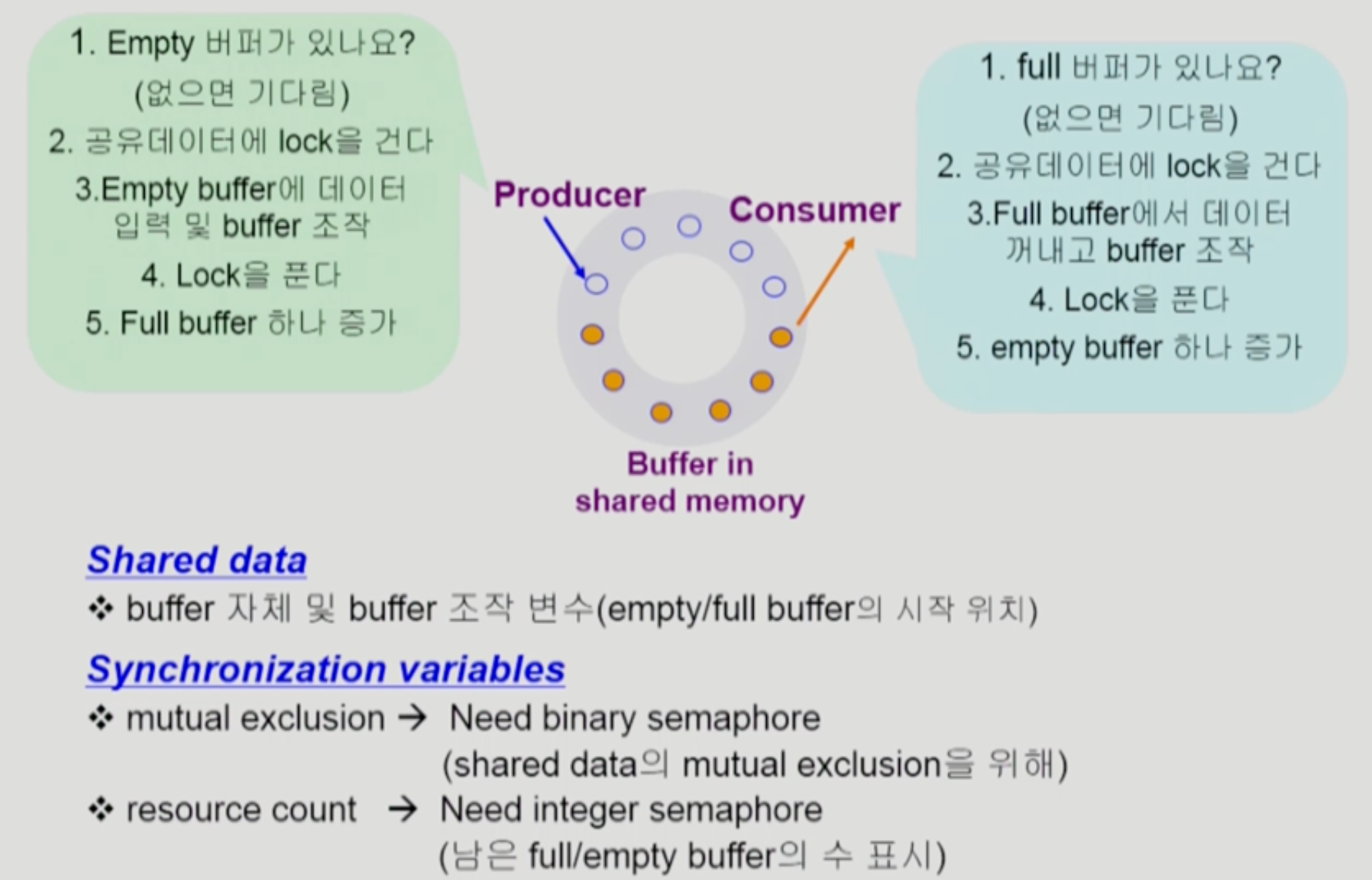- 버퍼가 없으면 소비자가 기다려야 한다.