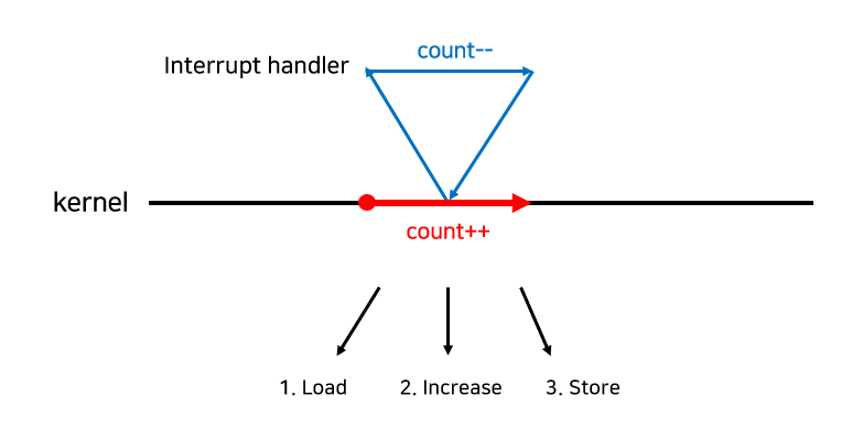 - 만약 Load이후 인터럽트 발생 시 인터럽트 이후의 결과는 반영되지 않고 count++만 반양